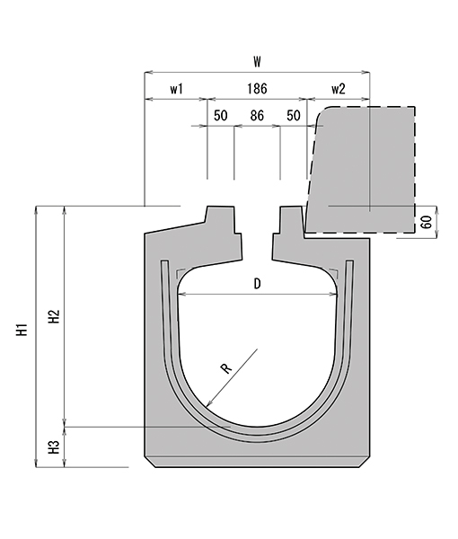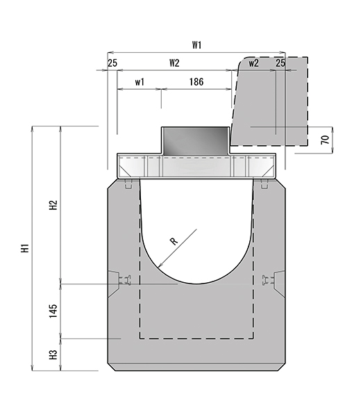 側溝エプロン幅の縮小と安全対策された鋼製蓋で自転車通行にも優しく、快適な街路空間を提供できます。 側溝サイズ関係なく、集水桝の開口部も含めてエプロン部の路面露出幅が統一できる製品です。