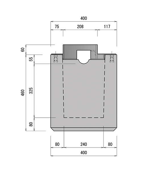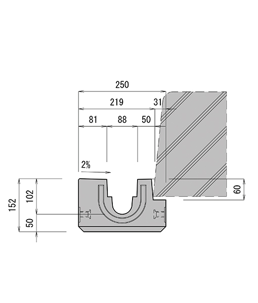 路面上の雨水を確実に排水できる連続開口の特徴を持つ商品で境界ブロックを側溝本体に直接布設出来る為、車道・歩道の幅員を最大限有効活用ができるタイプの商品です。