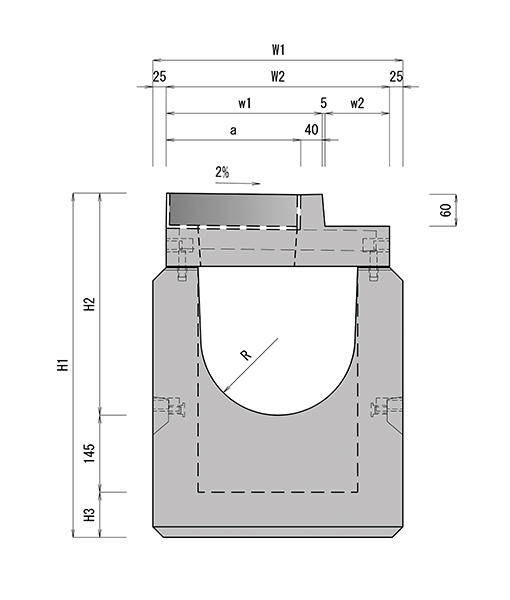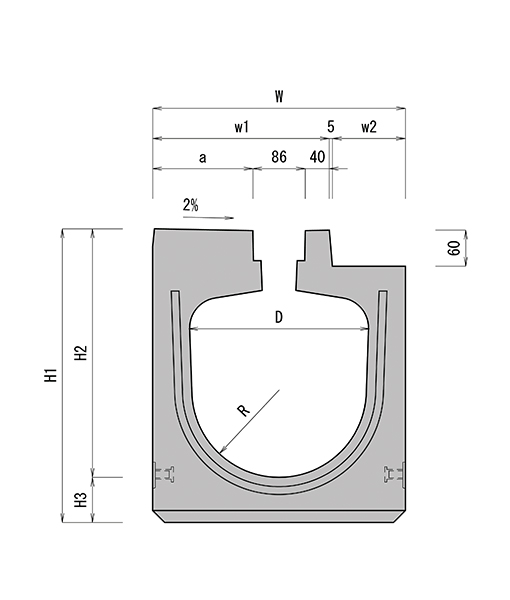 | 規格 | W1 | W2 | H1 | H2 | H3 | a | w1 | w2 | R | 参考重量(kg) | ダウンロード | |